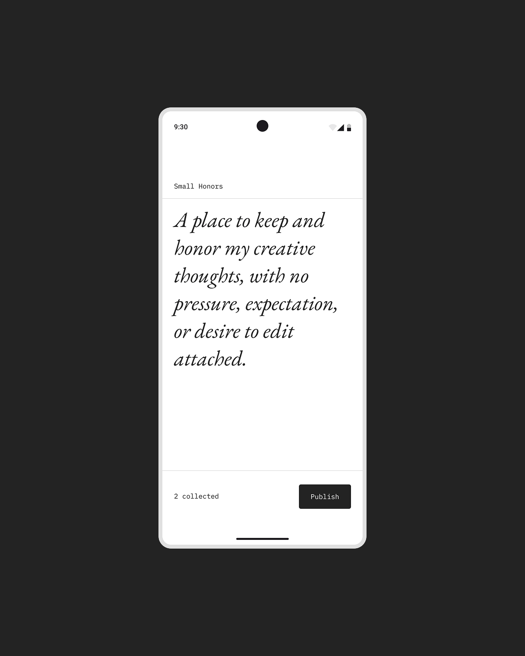 Coming soon to Google Play App dev & designVisual identity Small Honors An open invitation Every collaboration begins with a conversation. Share what brings you here.